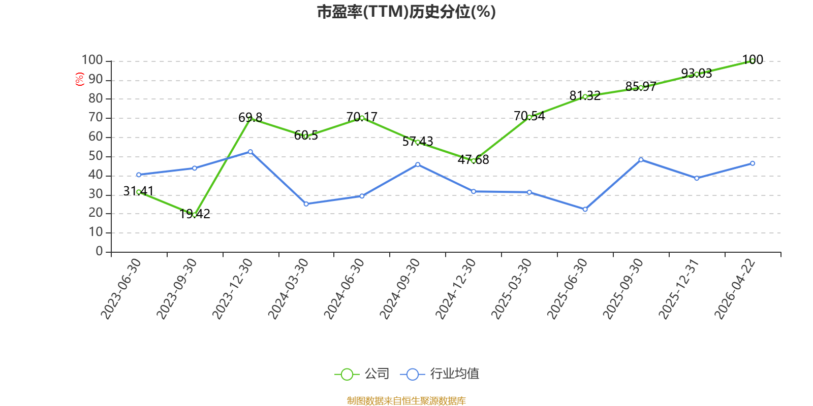 市盈率、市净率为负时,不显示当期分位数,会导致折线图中断。