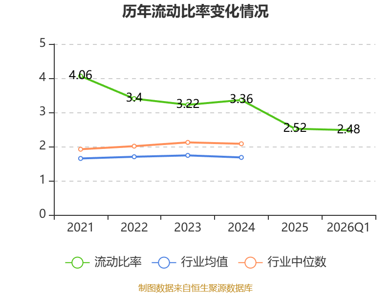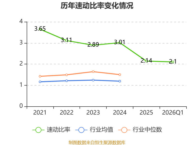 2026年第一季度,公司流动比率为2.48,速动比率为2.1。