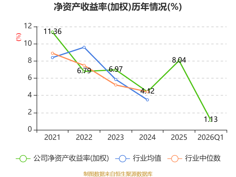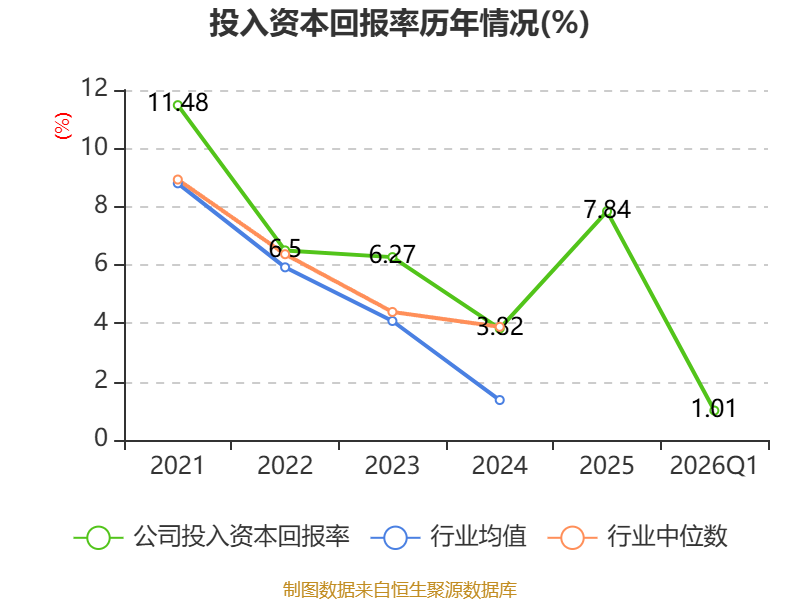 盈利能力方面, 2026年一季度公司加权平均净资产收益率为1.13%,同比上升0.97个百分点。公司2026年第一季度投入资本回报率为1.01%,较上年同期上升0.85个百分点。