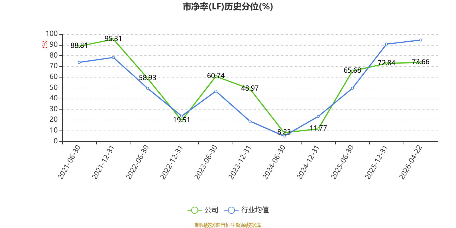 市盈率、市净率为负时,不显示当期分位数,会导致折线图中断。