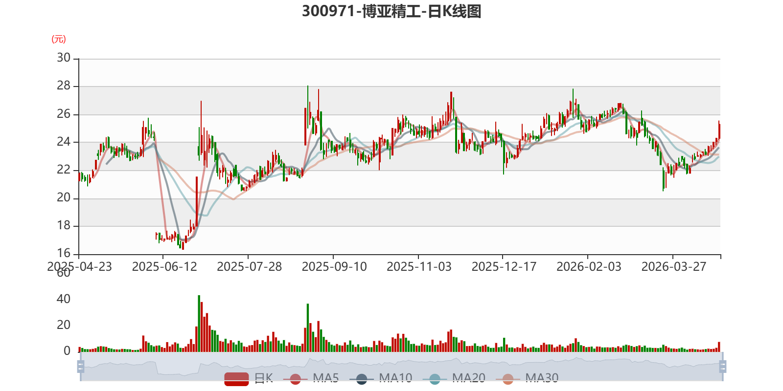 以4月22日收盘价计算,博亚精工目前市盈率(TTM)约为31.65倍,市净率(LF)约2.75倍,市销率(TTM)约5.28倍。