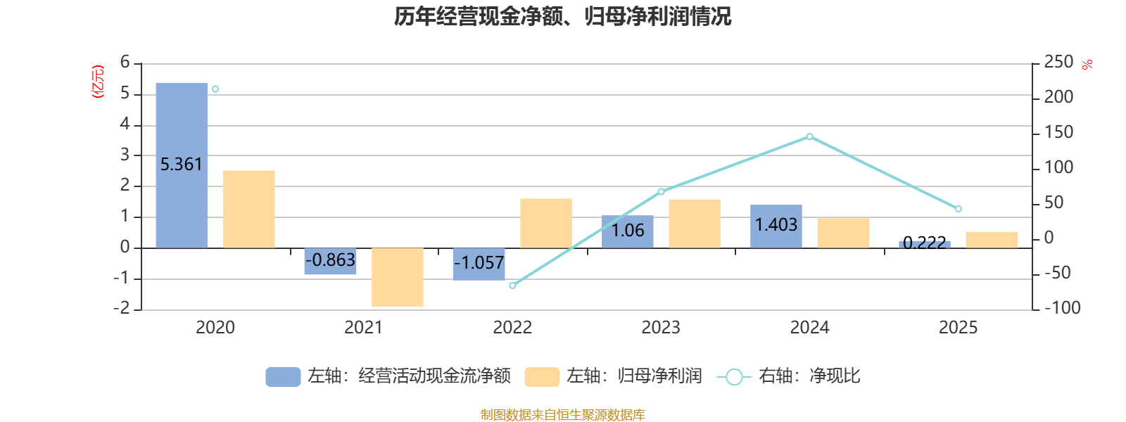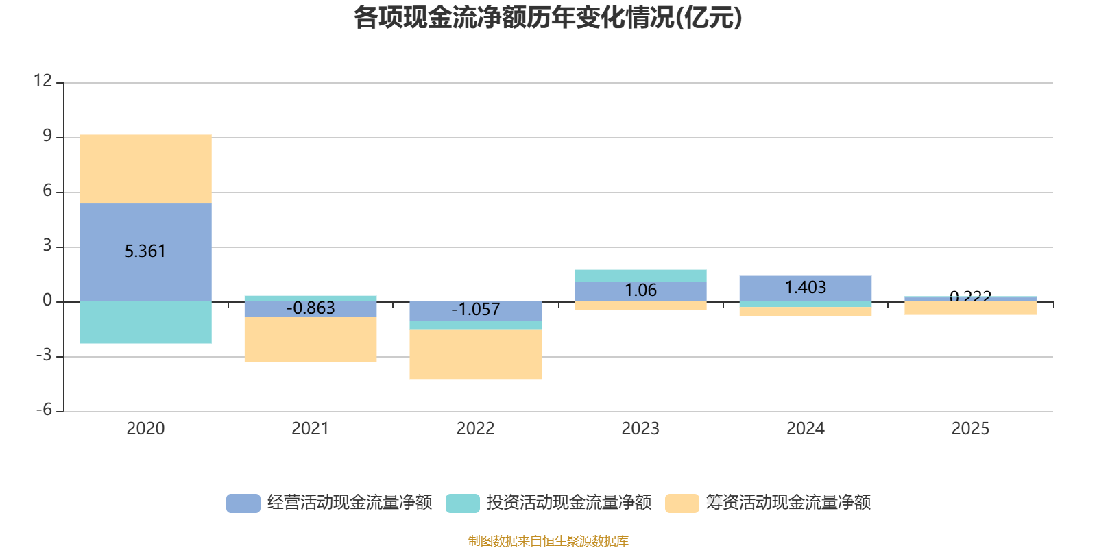 2025年,公司经营活动现金流净额为2217.1万元,同比下降84.2%;筹资活动现金流净额-7353.9万元,同比减少2225.5万元;投资活动现金流净额661.9万元,上年同期为-3053.4万元。