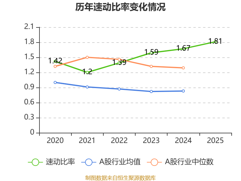 2025年,公司流动比率为1.81,速动比率为1.81。