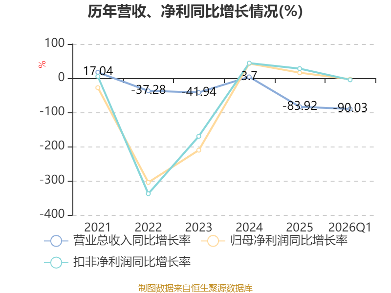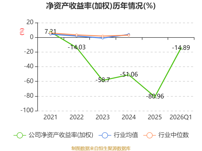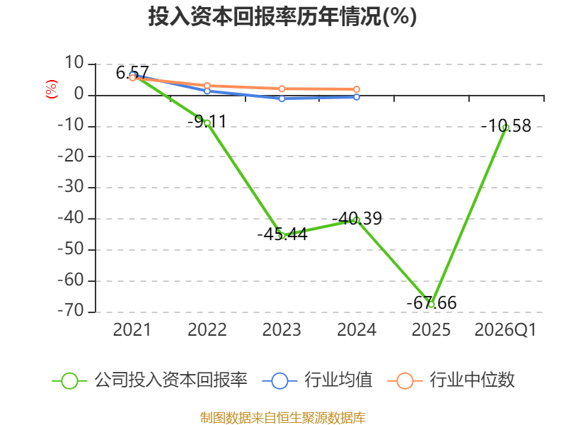 盈利能力方面, 2026年一季度公司加权平均净资产收益率为-14.89%,同比下降9.05个百分点。公司2026年第一季度投入资本回报率为-10.58%,较上年同期下降5.91个百分点。