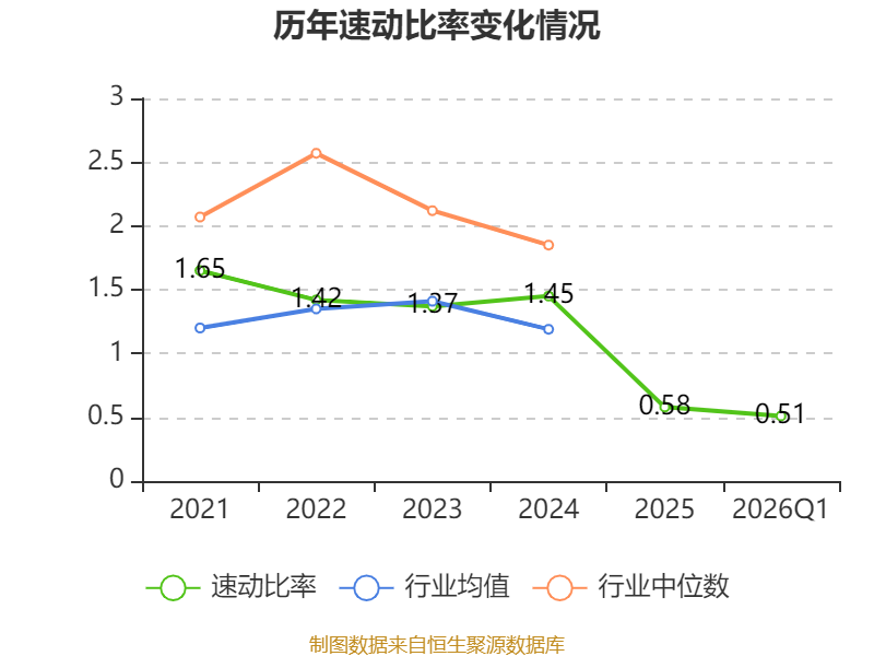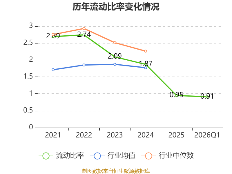 2026年第一季度,公司流动比率为0.91,速动比率为0.51。