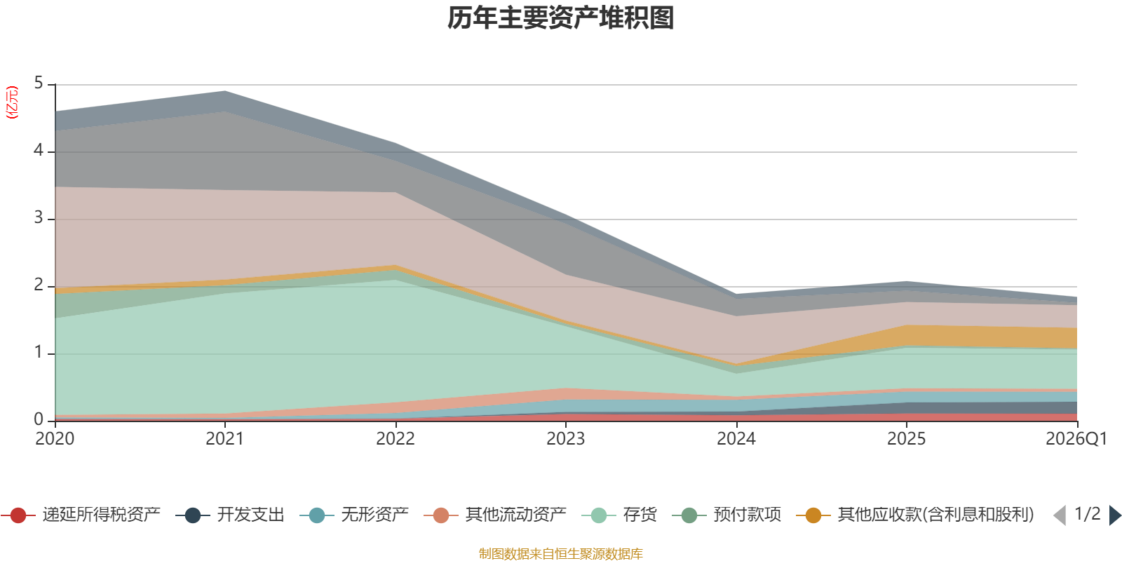 资产重大变化方面,截至2026年一季度末,公司货币资金较上年末减少78.82%,占公司总资产比重下降6.18个百分点;存货较上年末减少3.05%,占公司总资产比重上升2.68个百分点;应收款项融资较上年末减少100%,占公司总资产比重下降2.32个百分点;应收票据及应收账款较上年末减少0.7%,占公司总资产比重上升1.94个百分点。