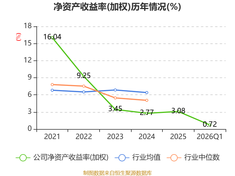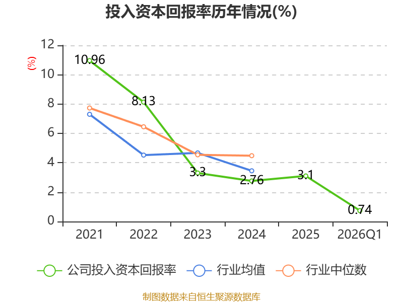 盈利能力方面, 2026年一季度公司加权平均净资产收益率为0.72%,同比上升0.42个百分点。公司2026年第一季度投入资本回报率为0.74%,较上年同期上升0.42个百分点。