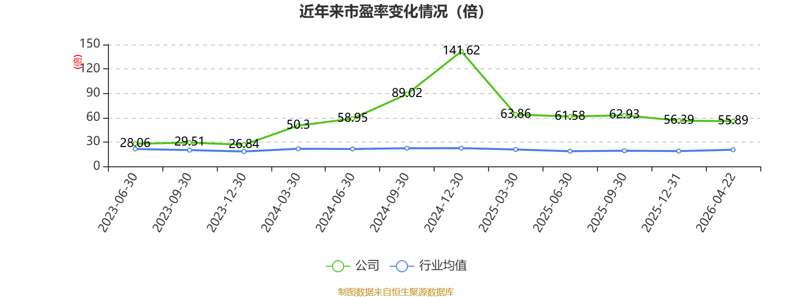 以4月22日收盘价计算,高铁电气目前市盈率(TTM)约为55.89倍,市净率(LF)约1.93倍,市销率(TTM)约2.58倍。