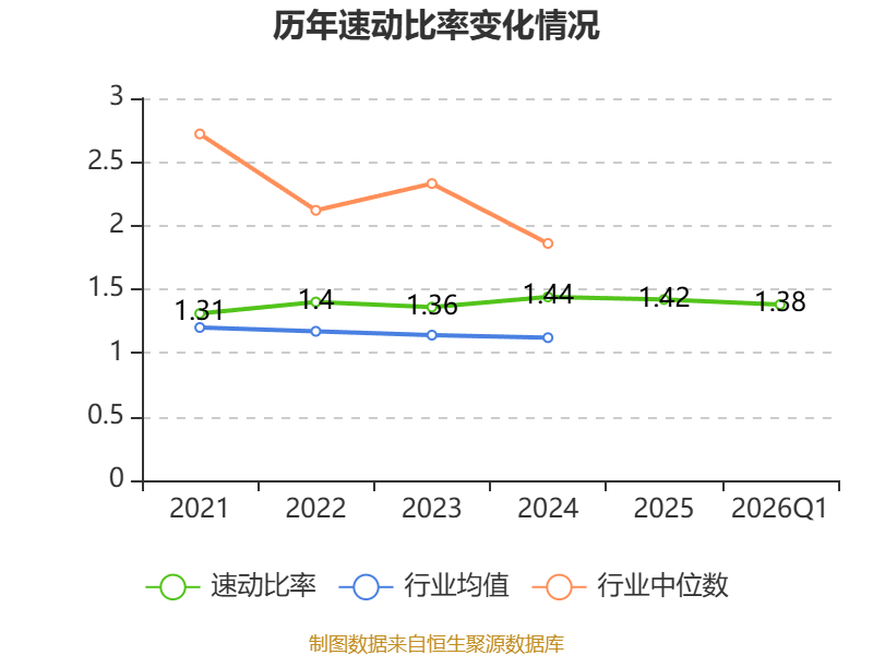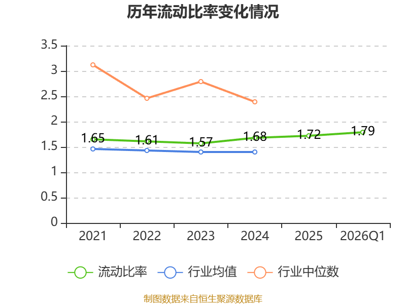 2026年第一季度,公司流动比率为1.79,速动比率为1.38。