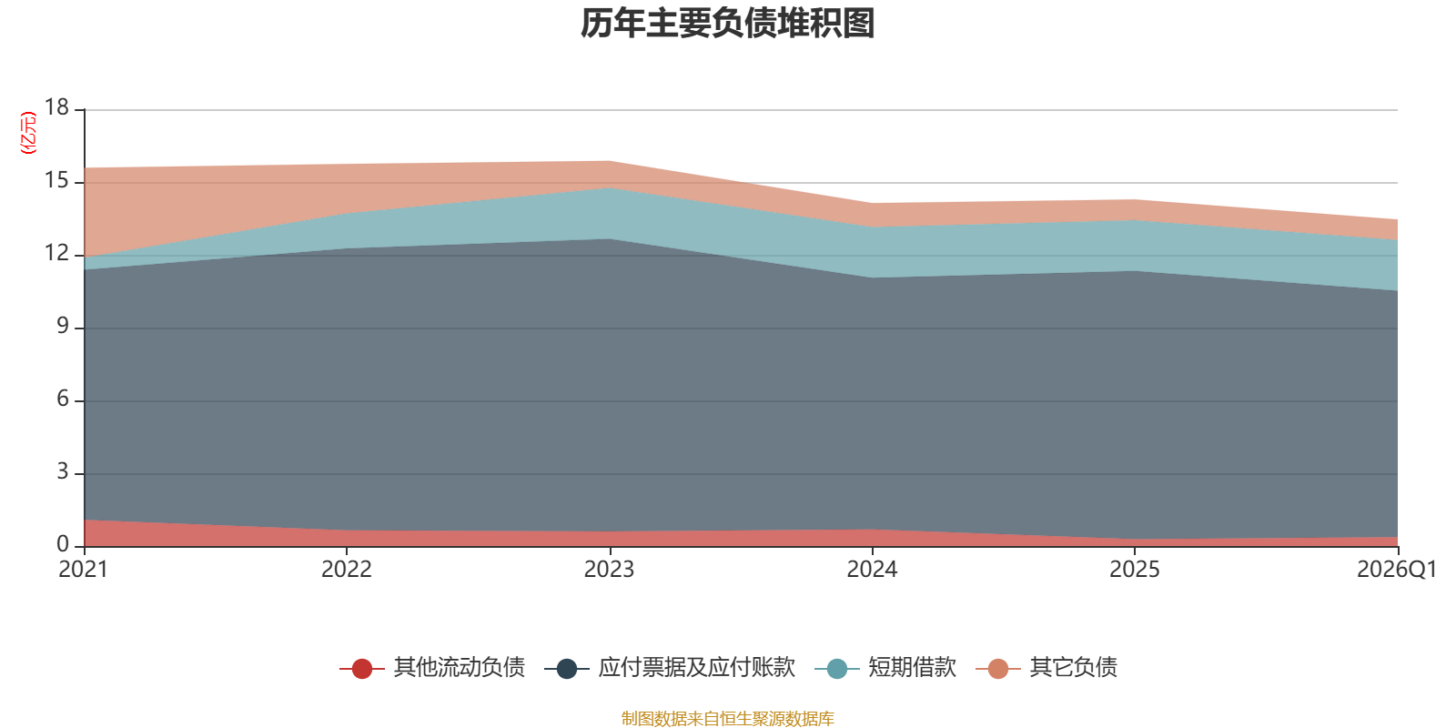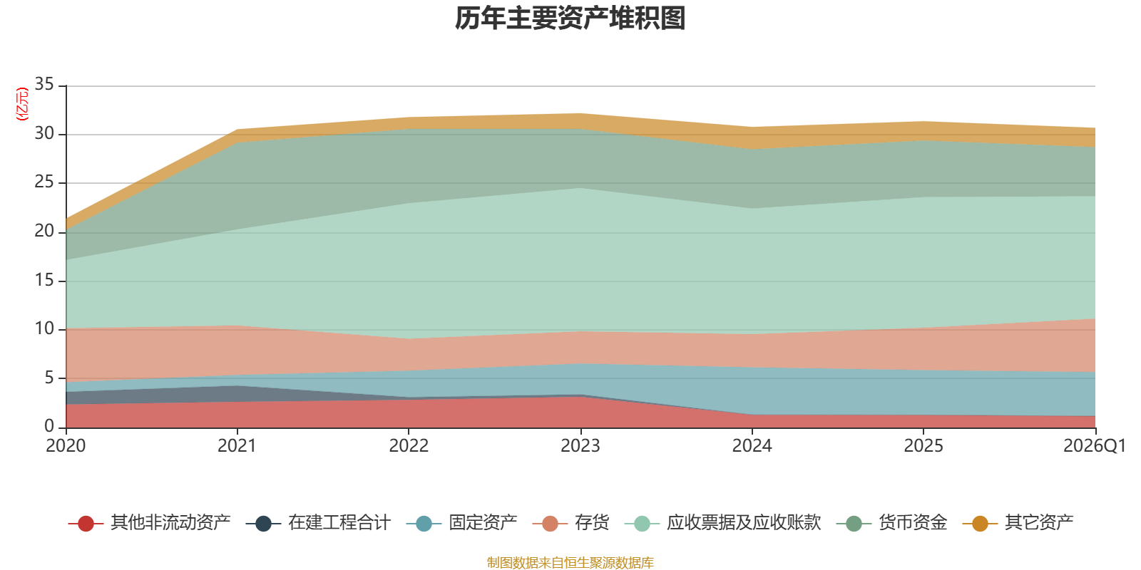 资产重大变化方面,截至2026年一季度末,公司存货较上年末增加26.09%,占公司总资产比重上升4个百分点;货币资金较上年末减少13.37%,占公司总资产比重下降2.12个百分点;应收票据及应收账款较上年末减少6.25%,占公司总资产比重下降1.77个百分点;应收款项融资较上年末减少46.24%,占公司总资产比重下降0.32个百分点。