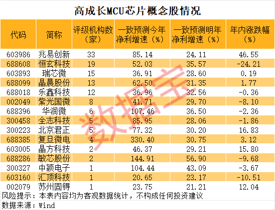 近期机构研报标题提及MCU的个股有乐鑫科技、兆易创新、中颖电子等。