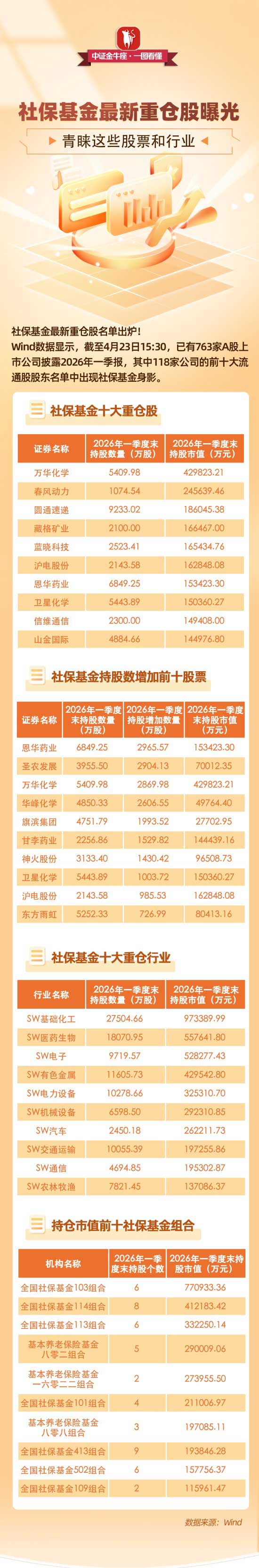 【一图看懂】社保基金最新重仓股曝光,青睐这些股票和行业