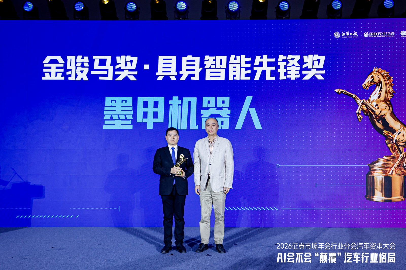 4月23日,在《证券日报》社主办,国联民生证券股份有限公司协办的2026年证券市场年会行业分会汽车资本大会上,《证券日报》2026年度“金骏马奖”汽车行业专项评选结果正式揭晓。广汽集团、墨甲机器人、地平线、上汽荣威、岚图汽车分别获得汽车智造跃升奖、具身智能先锋奖、智驾落地领航奖、智能生态共创奖、品牌势能卓越奖。此次评选共有26家企业入围,最终获奖名单从多个维度遴选而出,体现出较强的专业性和行业公信力。