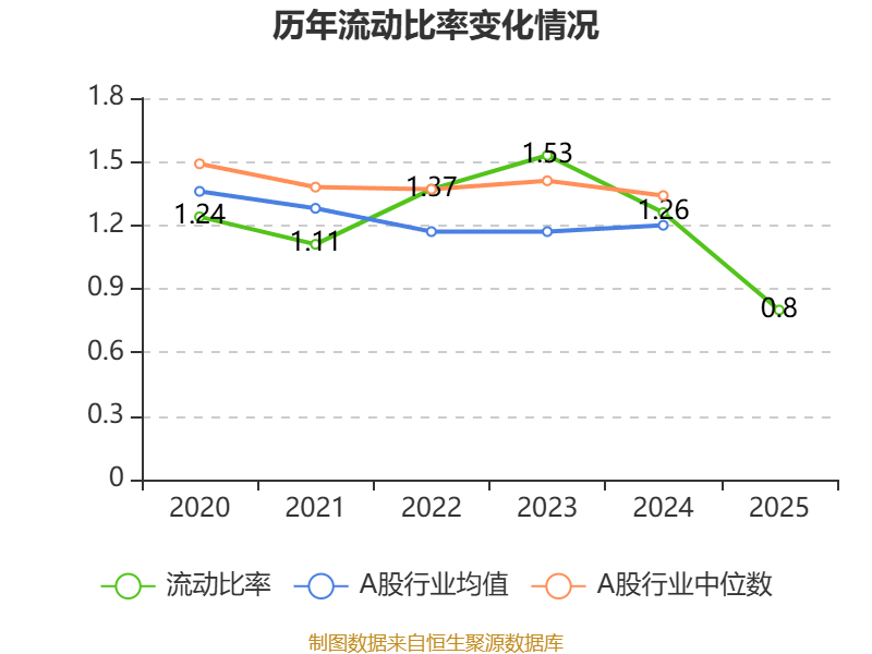 2025年,公司流动比率为0.80,速动比率为0.61。