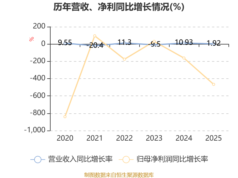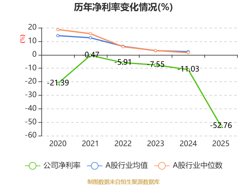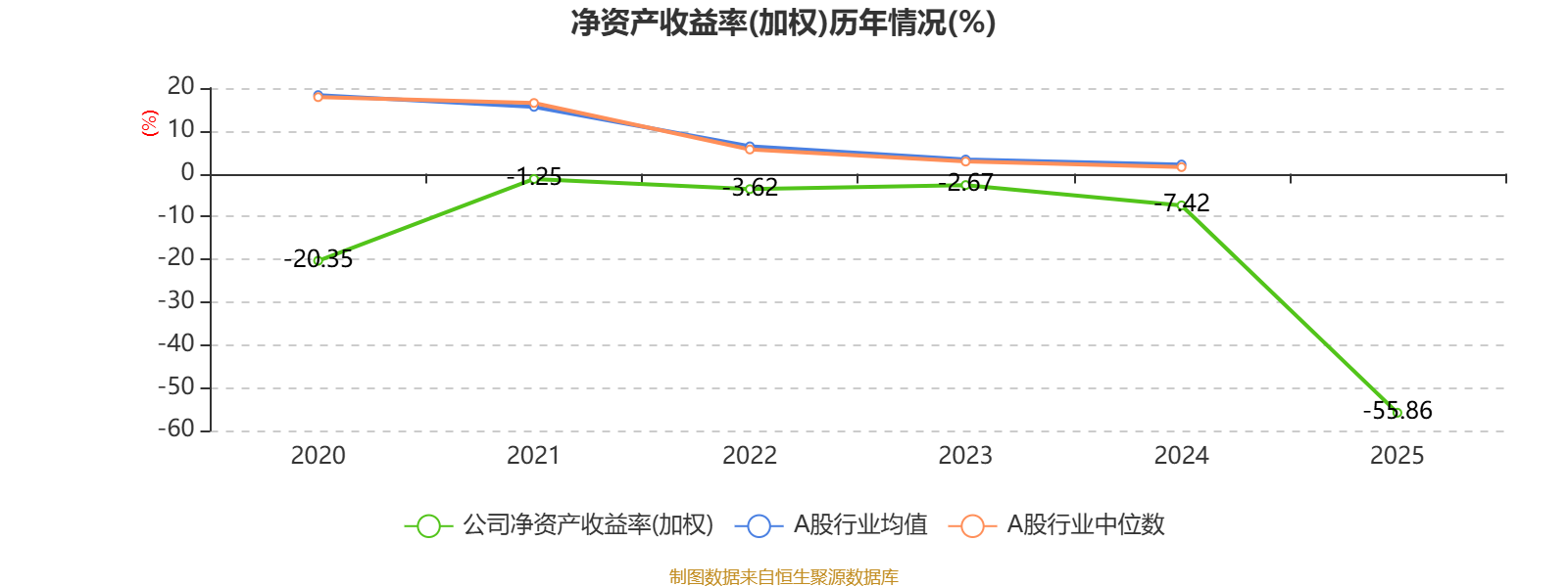 数据显示,2025年公司平均净资产收益率为-55.86%,较上年同期下降48.44个百分点。