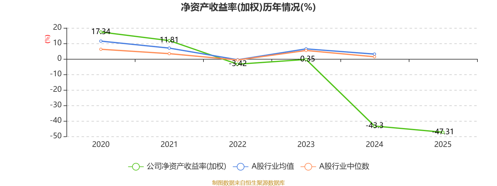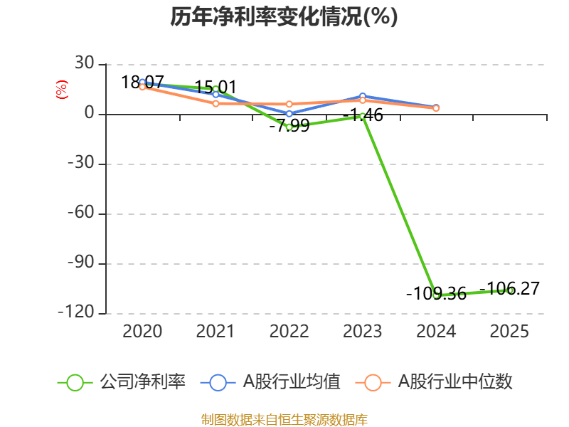 数据显示,2025年公司平均净资产收益率为-47.31%,较上年同期下降4.01个百分点。