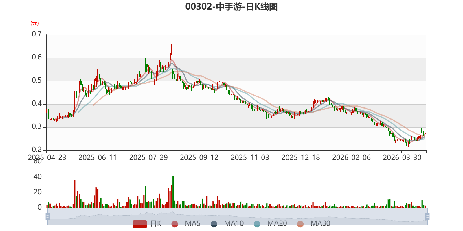 以4月23日收盘价计算,中手游目前市净率(TTM)约0.31倍,市销率(TTM)约0.54倍。
