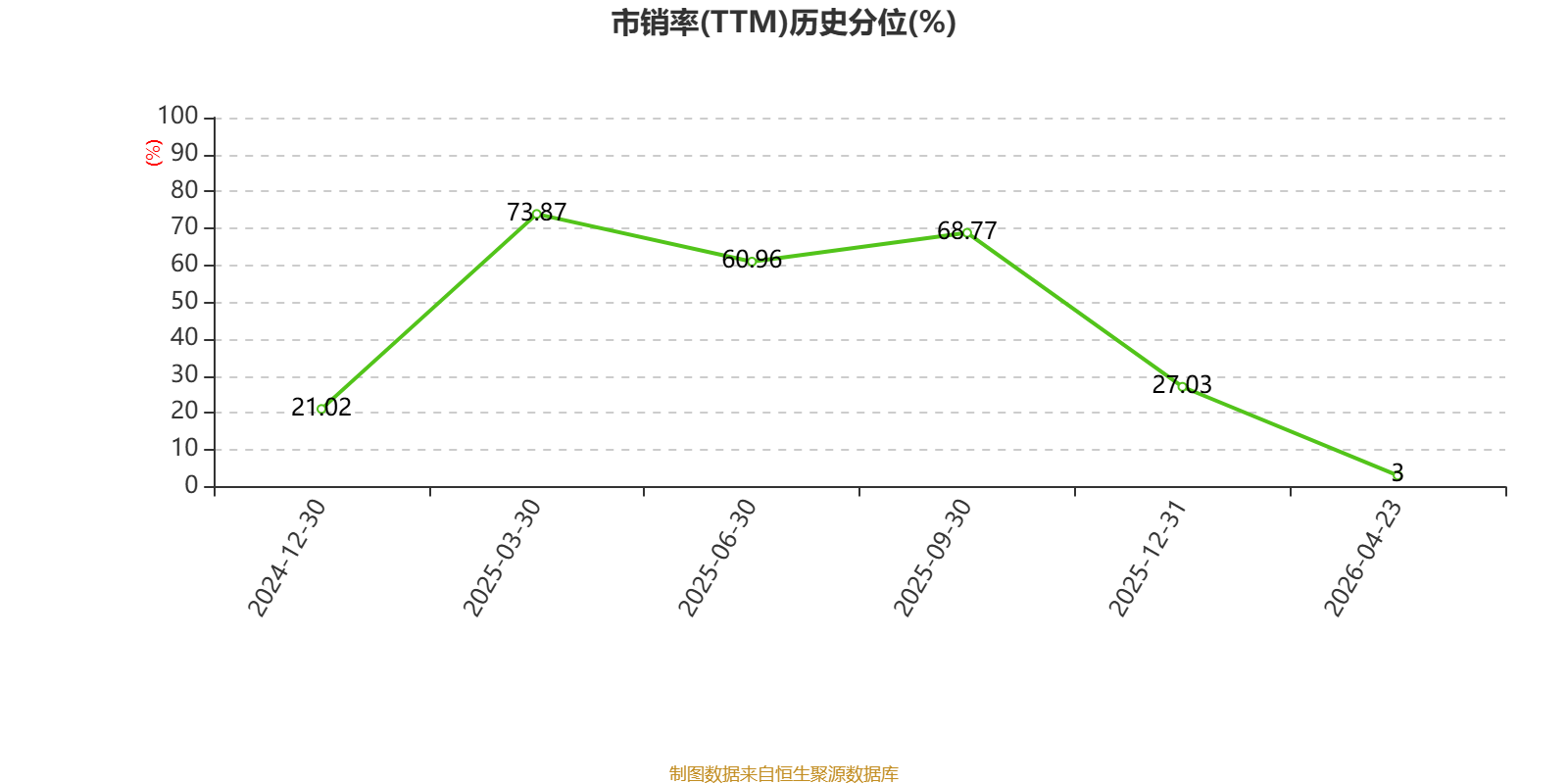 以4月23日收盘价计算,多点数智目前市盈率(TTM)约43.92倍,市净率(TTM)约6.53倍,市销率(TTM)约2.64倍。