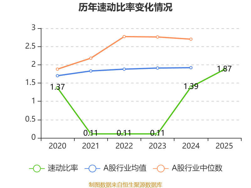 2025年,公司流动比率为1.89,速动比率为1.87。