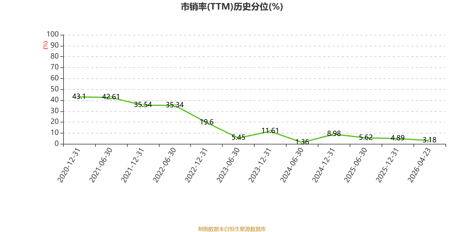 以4月23日收盘价计算,绿城中国目前市盈率(TTM)约292.43倍,市净率(TTM)约0.59倍,市销率(TTM)约0.13倍。