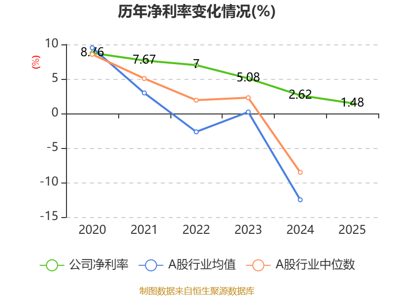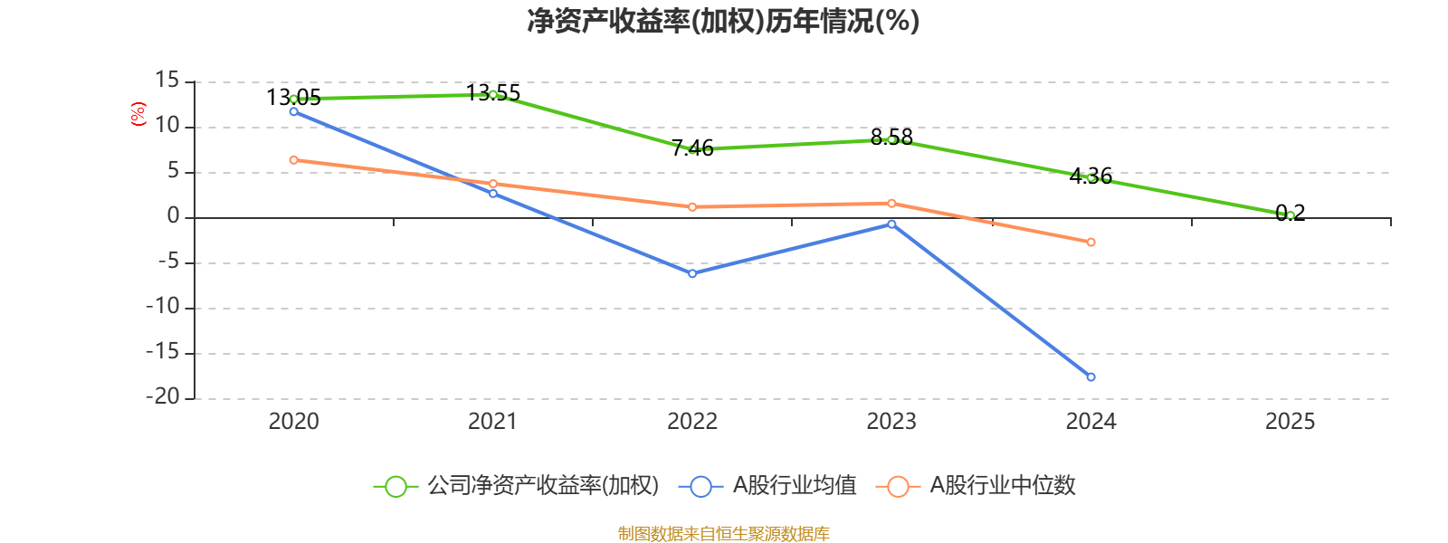 数据显示,2025年公司平均净资产收益率为0.2%,较上年同期下降4.16个百分点。