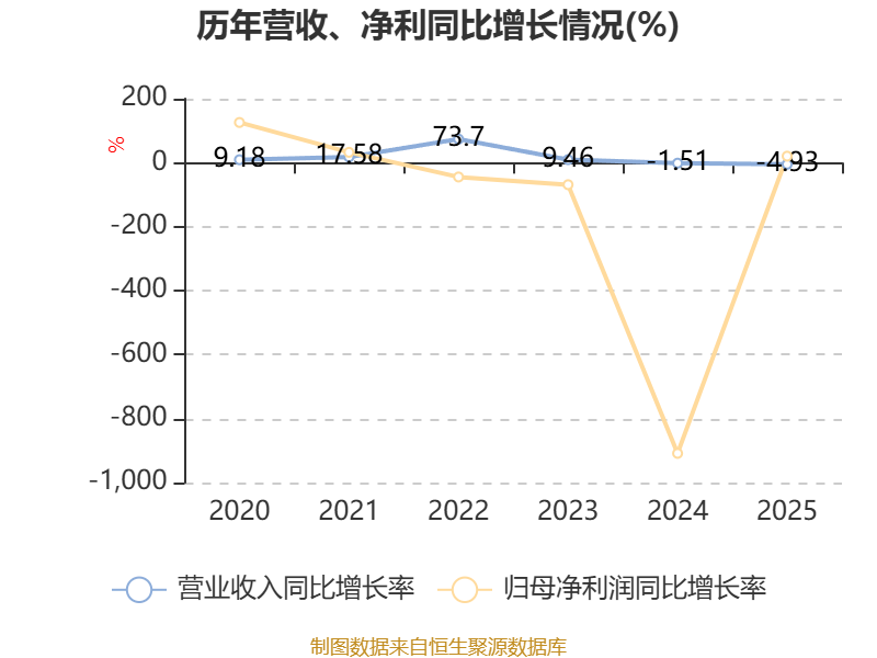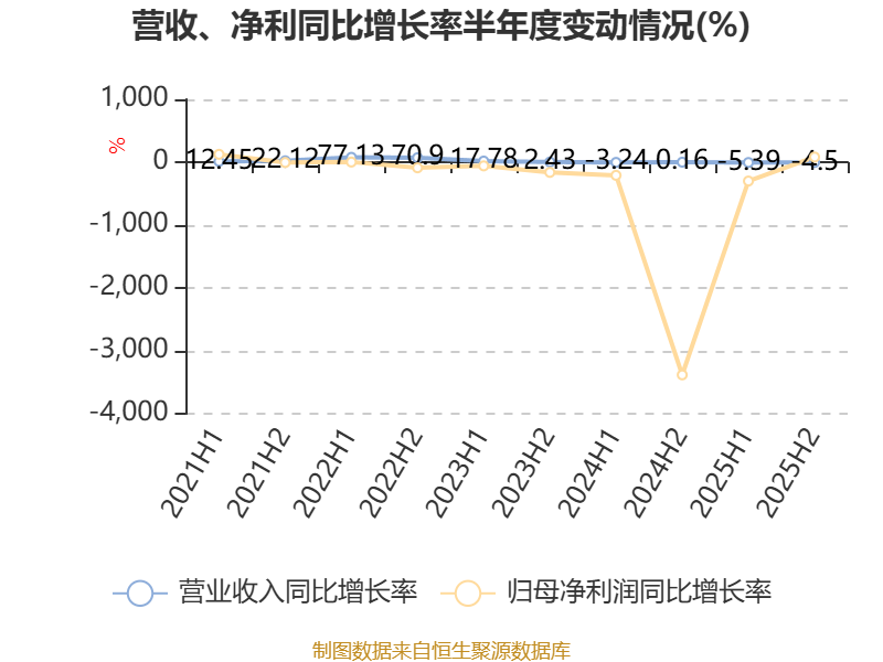 数据显示,2025年公司平均净资产收益率为-12.83%,较上年同期上升0.68个百分点。