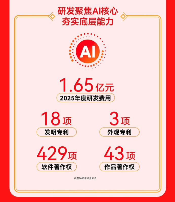 在推动各项重点业务持续提升竞争力的同时,AI能力在公司内部的全面覆盖,也进一步带动了组织管理的智能化升级。2025年,公司各业务板块和职能部门均结合自身特点引入AI相关应用,通过“岗位+AI”的方式持续优化工作流程及人员结构,不仅提升了精细化管理水平,也有效降低了管理成本。报告期内,公司销售费用和管理费用的显著下降,也体现出公司在AI应用、流程优化和精细化管理方面取得的成效。