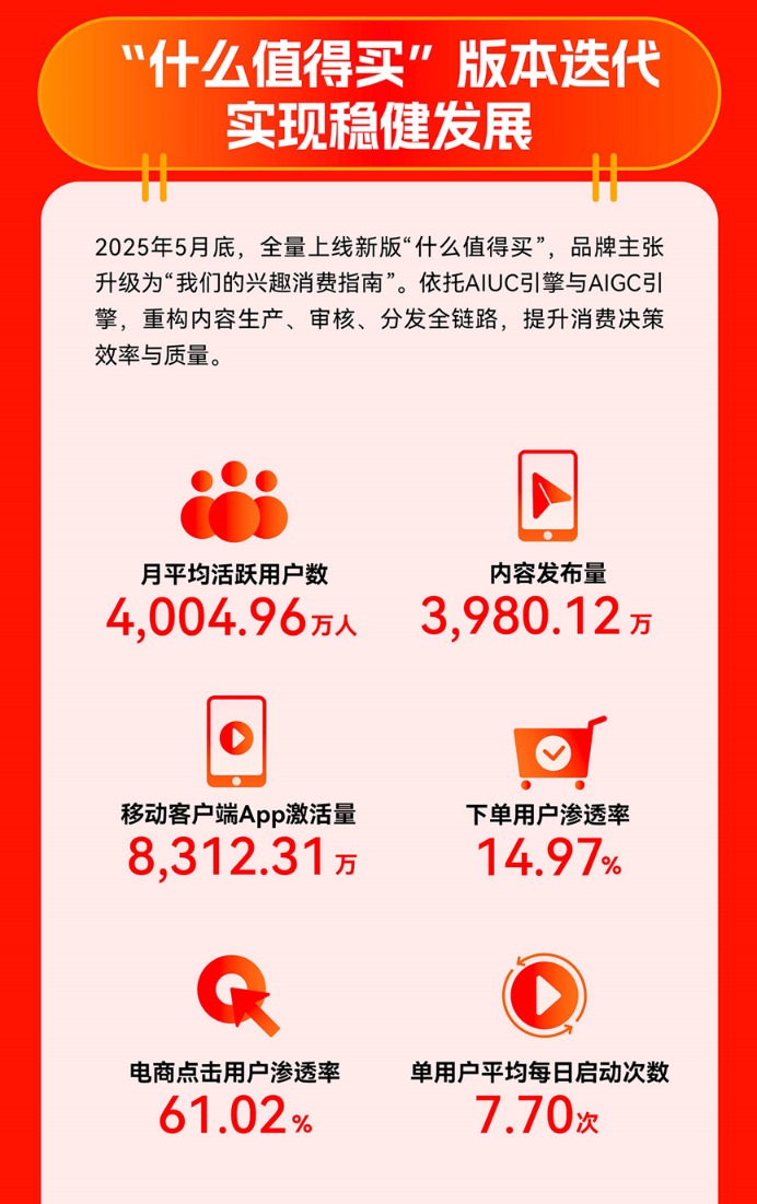 AI驱动下的消费决策路径变化,也在重塑“什么值得买”的底层商业化逻辑。平台为商业化伙伴提供的价值,正从“流量曝光”进一步转向“更准确地理解用户需求”,通过更精准的数据与洞察,把内容、推荐和交易高效连接起来。报告期间,“什么值得买”移动客户端App下单用户渗透率(平均每日下单用户占日活跃用户的比例)提升0.90个百分点至14.97%,反映出平台在用户需求理解、内容分发和交易承接等环节的效率持续提升。