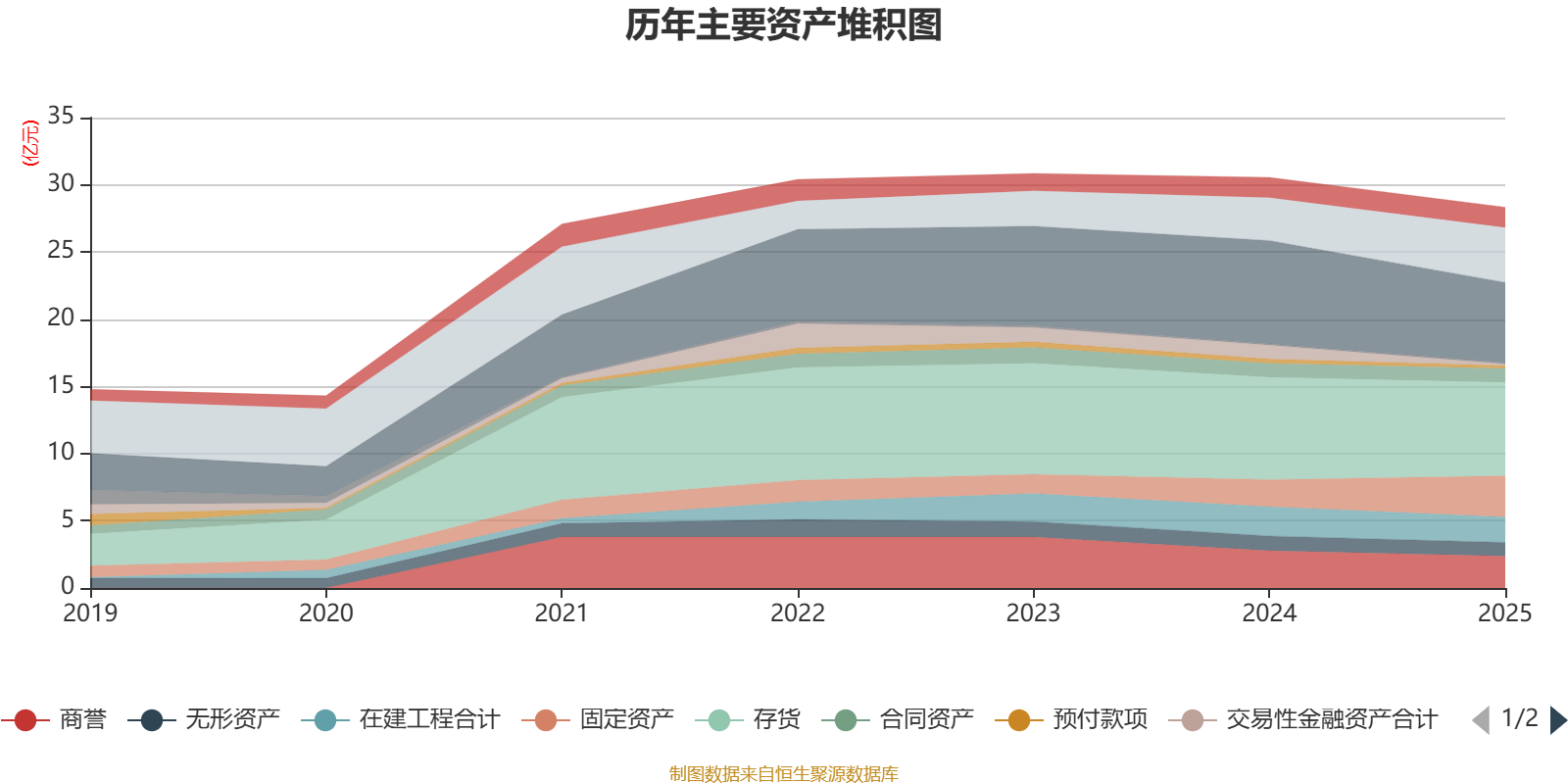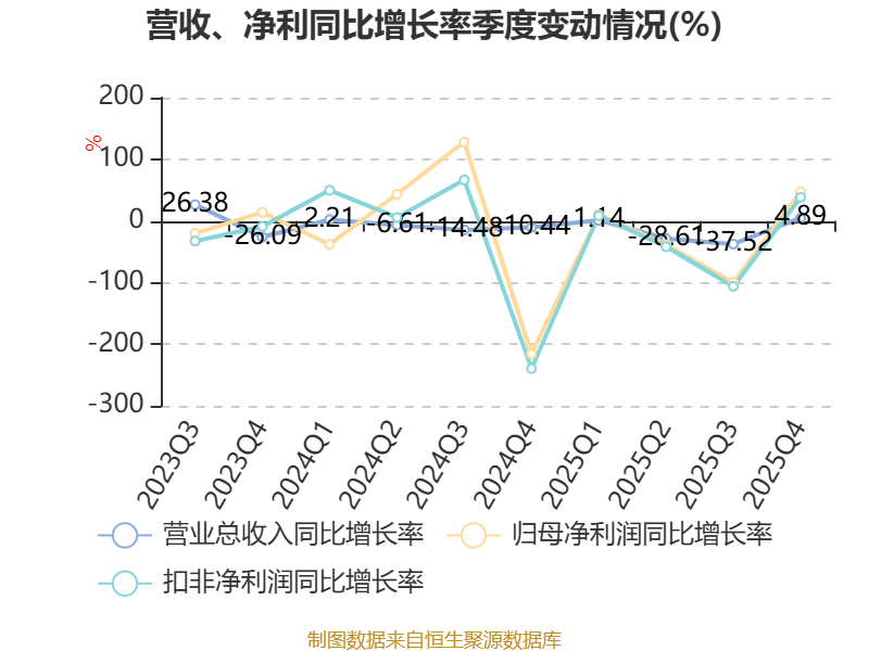 资产重大变化方面,截至2025年末,公司固定资产较上年末增加52.29%,占公司总资产比重上升4.21个百分点;应收票据及应收账款较上年末减少22.46%,占公司总资产比重下降4.13个百分点;货币资金较上年末增加27.78%,占公司总资产比重上升3.93个百分点;交易性金融资产合计较上年末减少89.18%,占公司总资产比重下降2.95个百分点。