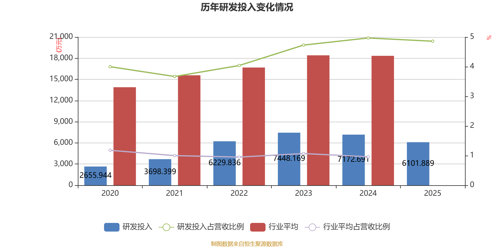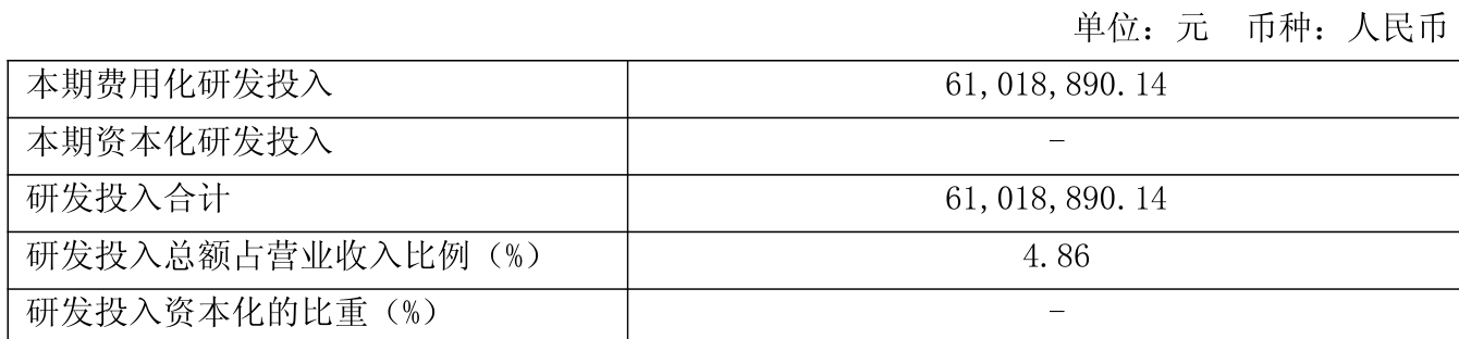 2025年全年,公司研发投入金额为6101.89万元,同比下降14.93%;研发投入占营业收入比例为4.86%,相比上年同期下降0.11个百分点。