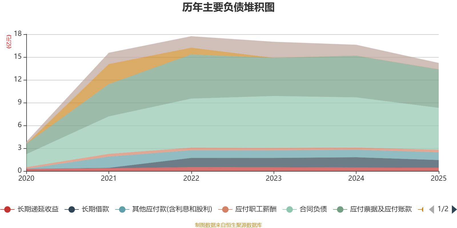 负债重大变化方面,截至2025年末,公司合同负债较上年末减少16.38%,占公司总资产比重下降2.12个百分点;一年内到期的非流动负债较上年末减少64.83%,占公司总资产比重下降1.34个百分点;长期借款较上年末减少25.72%,占公司总资产比重下降0.88个百分点;短期借款占公司总资产的0.67%,上年末为0。