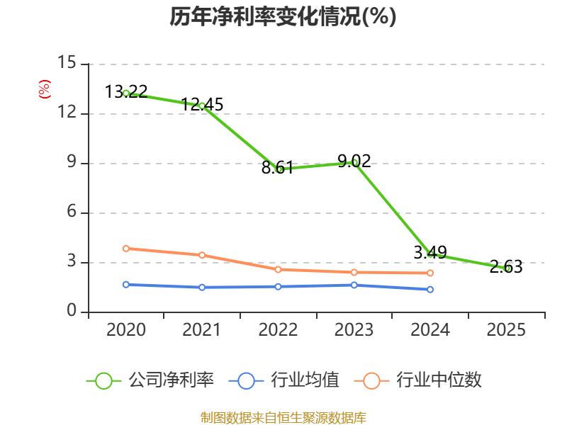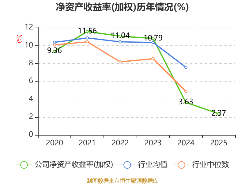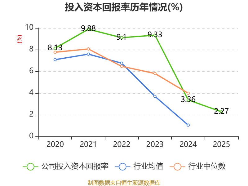 数据显示,2025年公司加权平均净资产收益率为2.37%,较上年同期下降1.26个百分点。公司2025年投入资本回报率为2.27%,较上年同期下降1.09个百分点。