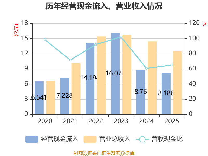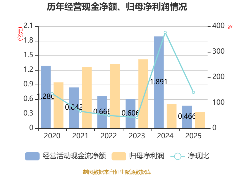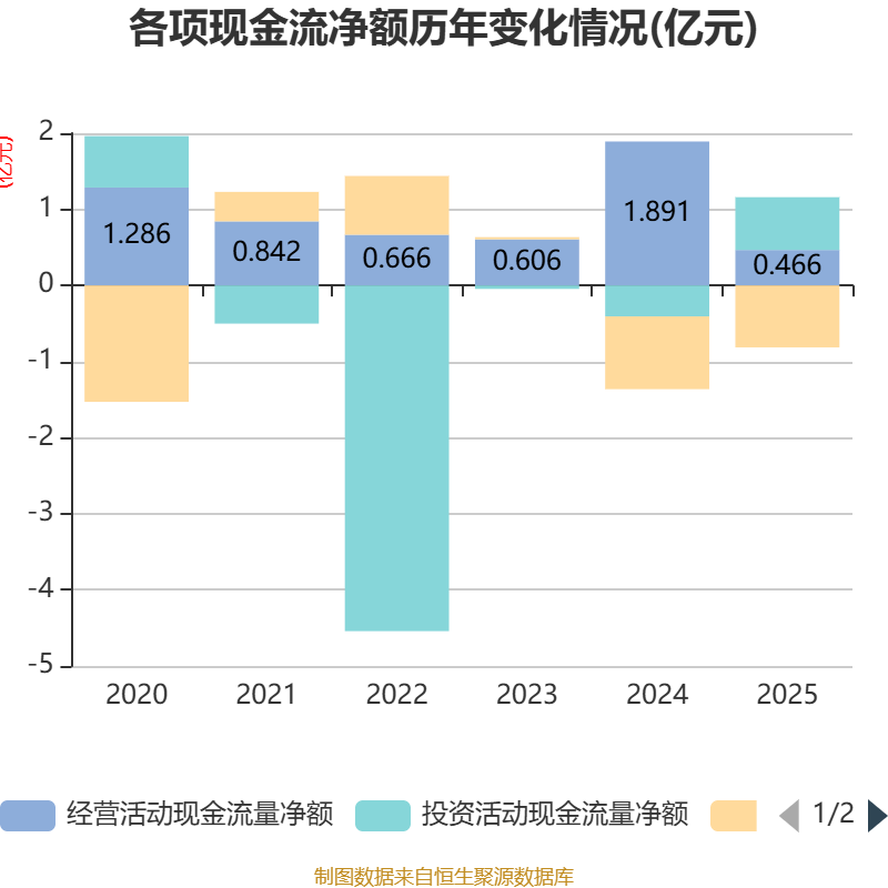 截至2025年,公司经营活动现金流净额为4662.18万元,同比下降75.35%;筹资活动现金流净额-8139.68万元,同比增加1415.89万元;投资活动现金流净额6932.4万元,上年同期为-4068.95万元。