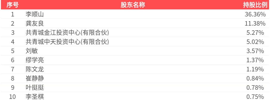 公司股东户数为1.42万户,前十大股东持股数量为1.36亿股,占总股本比例为66.54%,前十大股东持股情况如下: