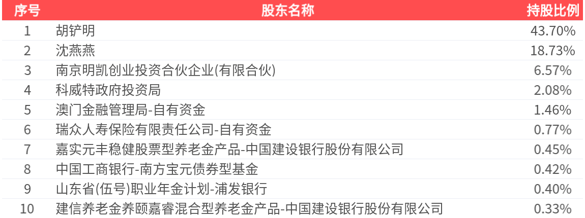 公司股东户数为1.06万户,前十大股东持股数量为3.54亿股,占总股本比例为74.92%,前十大股东持股情况如下: