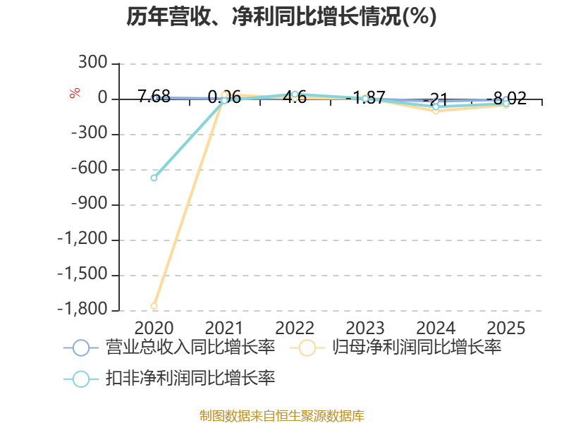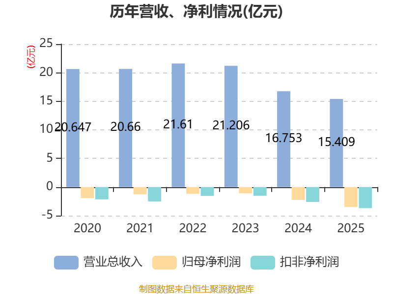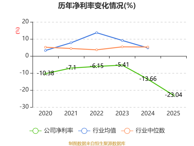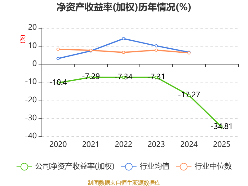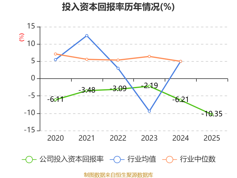 数据显示,2025年公司加权平均净资产收益率为-34.81%,较上年同期下降17.54个百分点。公司2025年投入资本回报率为-10.35%,较上年同期下降4.14个百分点。