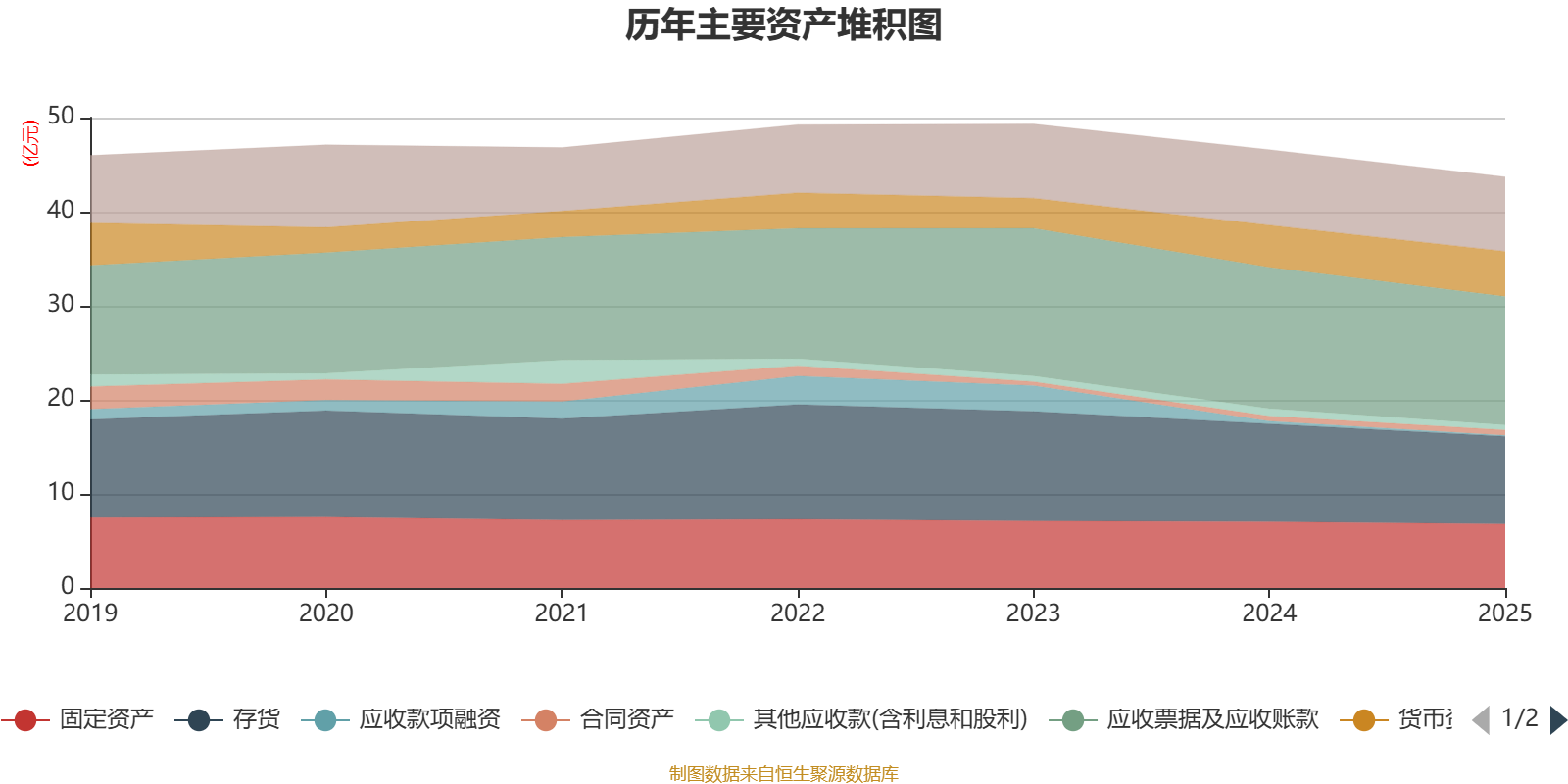 负债重大变化方面,截至2025年末,公司一年内到期的非流动负债较上年末增加296.71%,占公司总资产比重上升4.36个百分点;长期借款较上年末减少35.5%,占公司总资产比重下降1.87个百分点;应付票据及应付账款较上年末减少0.89%,占公司总资产比重上升1.49个百分点;长期应付款合计较上年末增加47.67%,占公司总资产比重上升1.24个百分点。