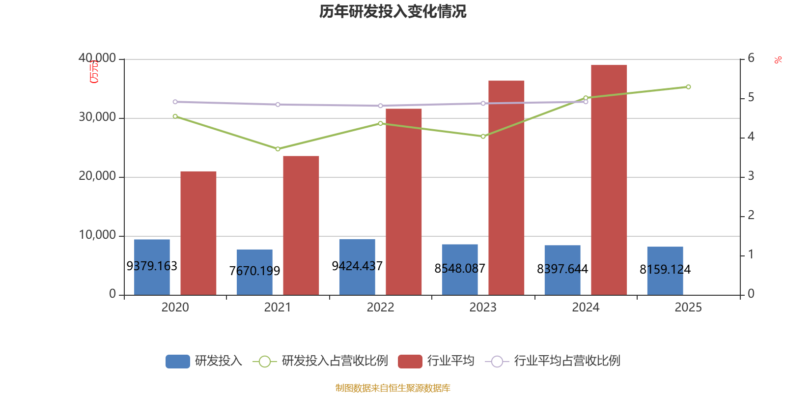 2025年全年,公司研发投入金额为8159.12万元,同比下降2.84%;研发投入占营业收入比例为5.29%,相比上年同期上升0.28个百分点。此外,公司全年研发投入资本化率为0%。