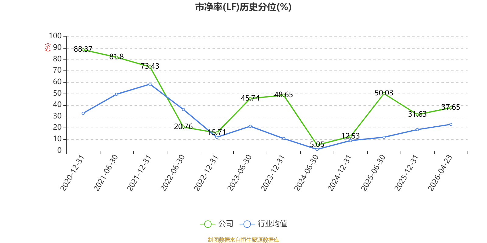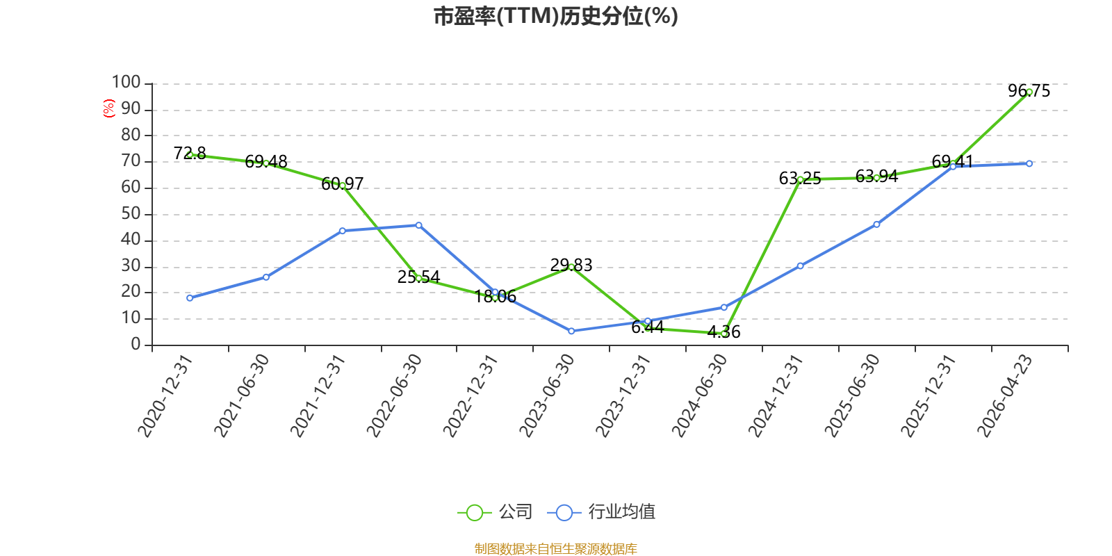 市盈率、市净率为负时,不显示当期分位数,会导致折线图中断。
