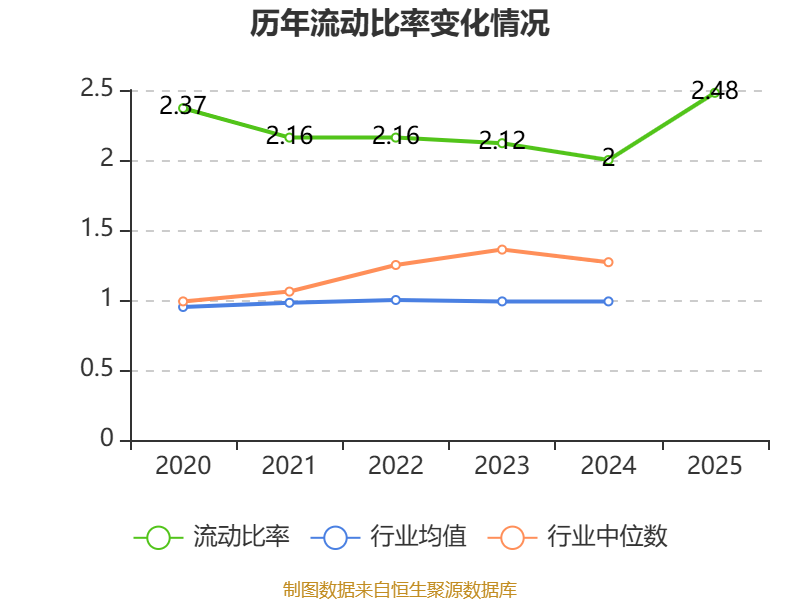 2025年,公司流动比率为2.48,速动比率为2.28。