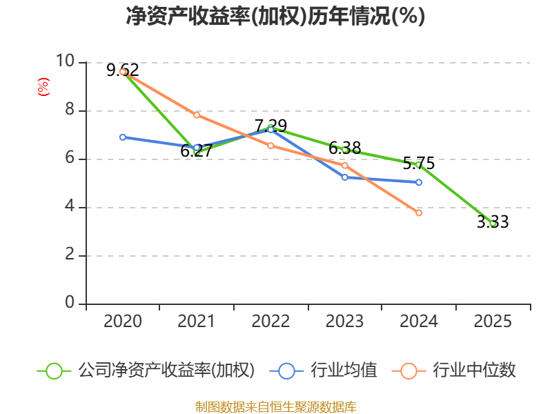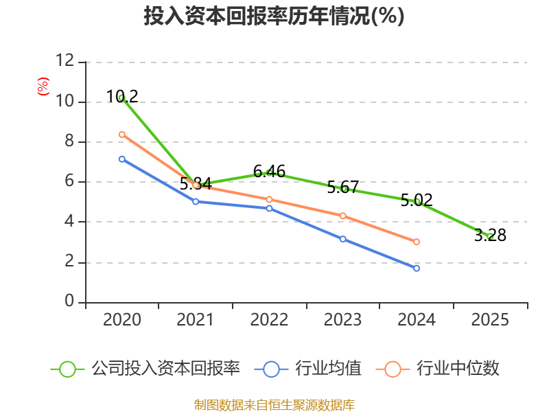 数据显示,2025年公司加权平均净资产收益率为3.33%,较上年同期下降2.42个百分点。公司2025年投入资本回报率为3.28%,较上年同期下降1.74个百分点。