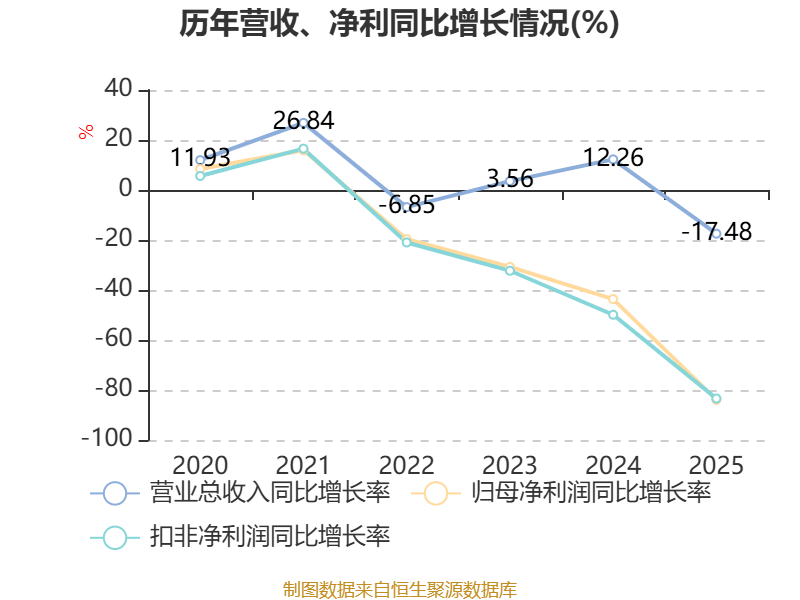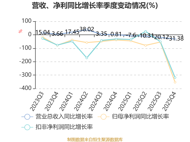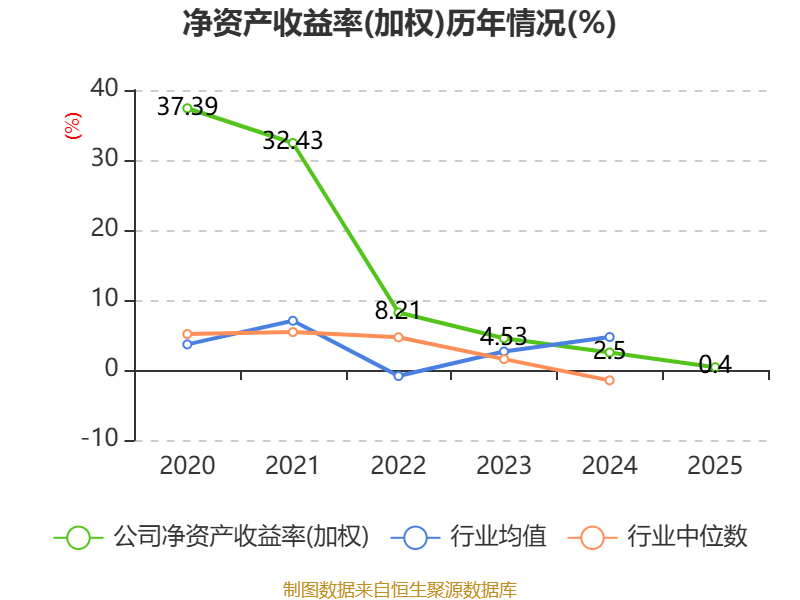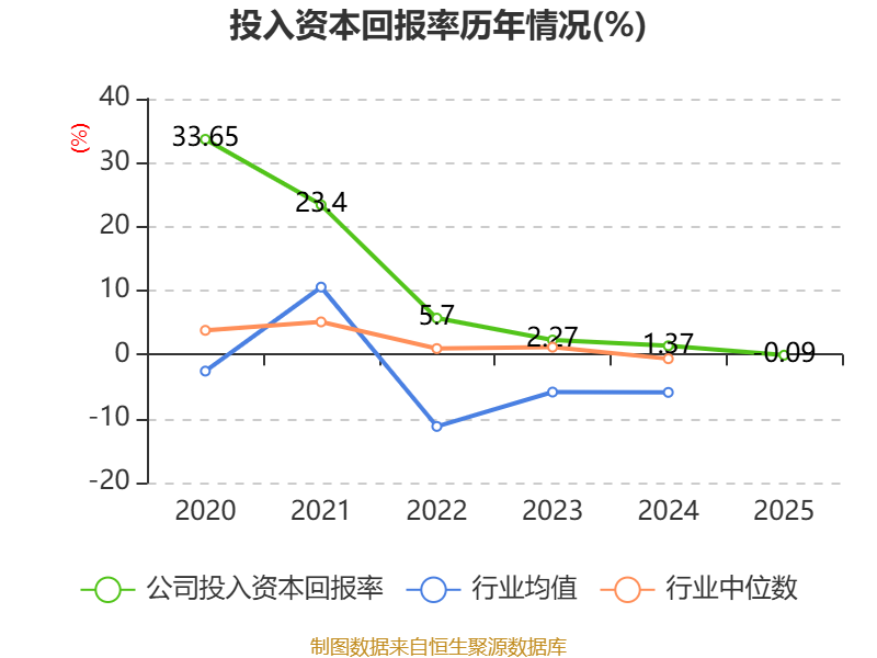 数据显示,2025年公司加权平均净资产收益率为0.4%,较上年同期下降2.1个百分点。公司2025年投入资本回报率为-0.09%,较上年同期下降1.46个百分点。
