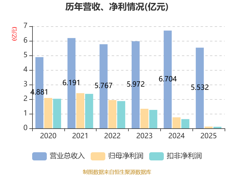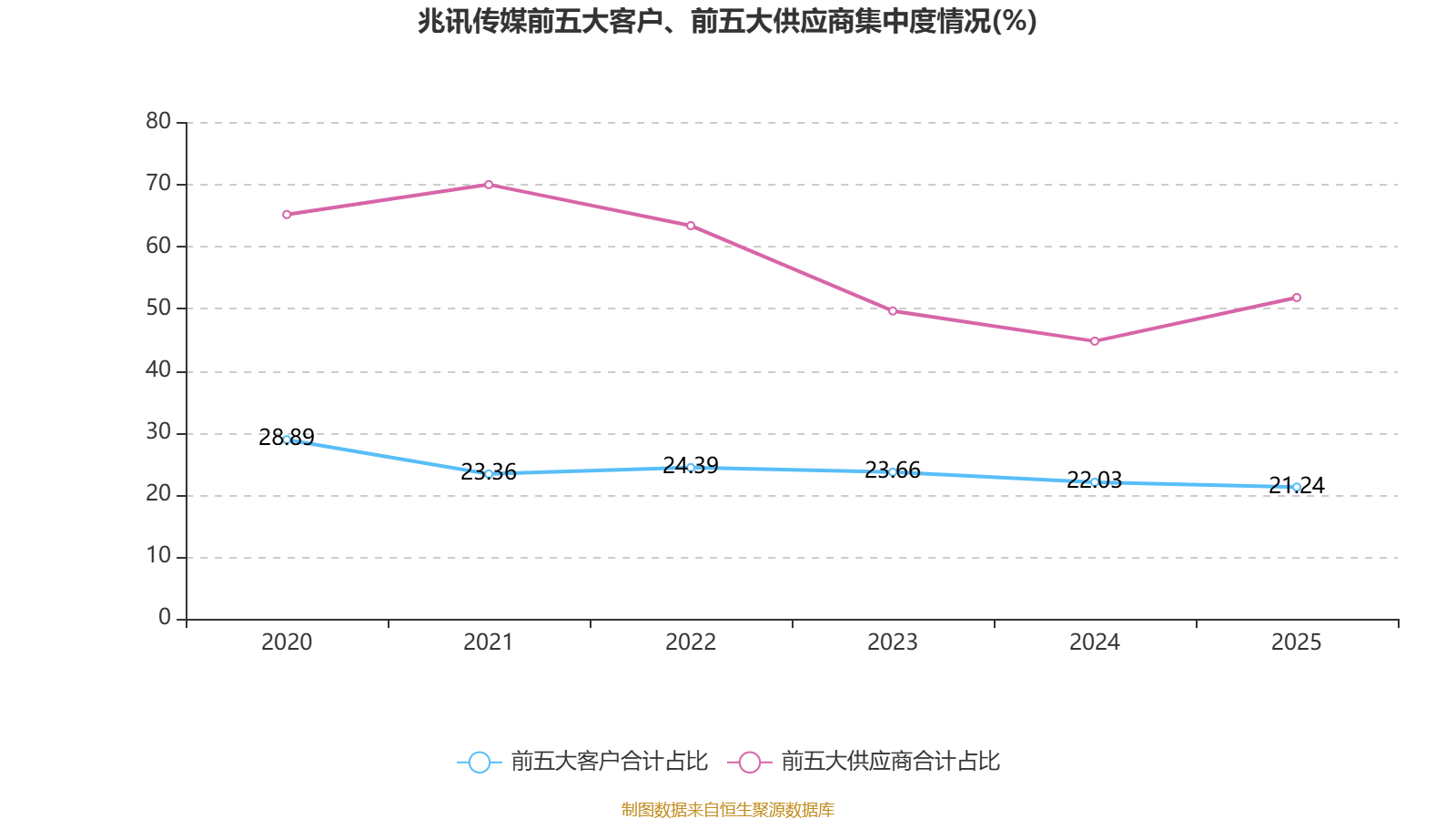 中证智能财讯兆讯传媒(301102)4月24日披露2025年年度报告。2025年,公司实现营业总收入5.53亿元,同比下降17.48%;归母净利润1214.58万元,同比下降83.94%;扣非净利润1051.42万元,同比下降83.40%;经营活动产生的现金流量净额为4.35亿元,同比下降1.05%;报告期内,兆讯传媒基本每股收益为0.03元,加权平均净资产收益率为0.40%。公司2025年度分配预案为:拟向全体股东每10股派现0.1元(含税)。