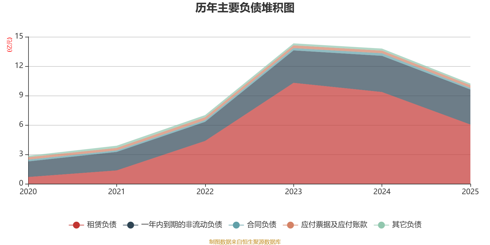 负债重大变化方面,截至2025年末,公司租赁负债较上年末减少35.47%,占公司总资产比重下降6.07个百分点;一年内到期的非流动负债较上年末减少3.06%,占公司总资产比重上升0.6个百分点;合同负债较上年末减少37.94%,占公司总资产比重下降0.19个百分点;应付票据及应付账款较上年末增加2.59%,占公司总资产比重上升0.08个百分点。