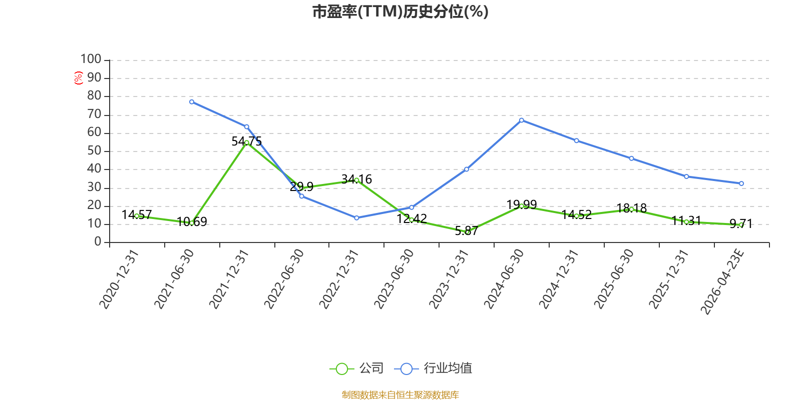 以本次披露业绩预告均值计算,公司近年市盈率(TTM)图如下所示:
