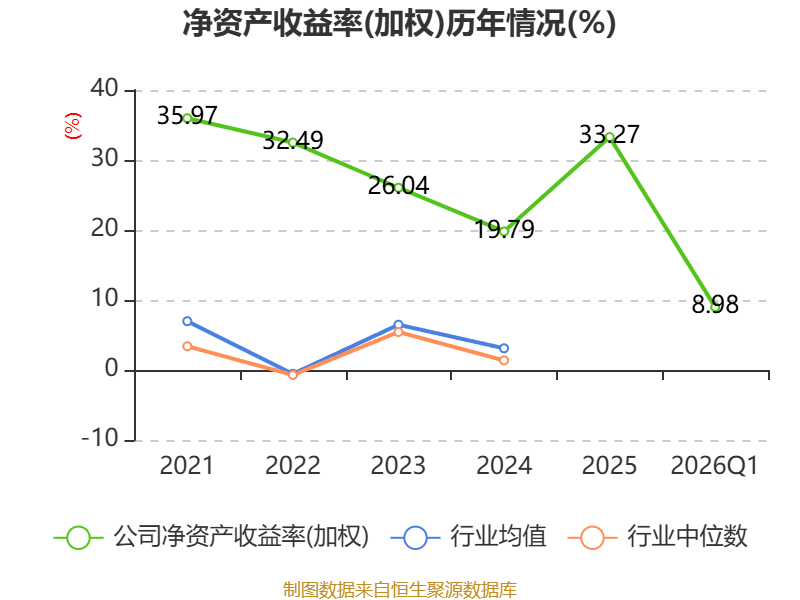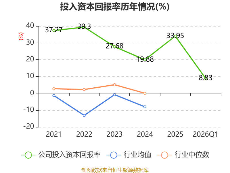 盈利能力方面, 2026年一季度公司加权平均净资产收益率为8.98%,同比上升3.36个百分点。公司2026年第一季度投入资本回报率为8.83%,较上年同期上升2.56个百分点。