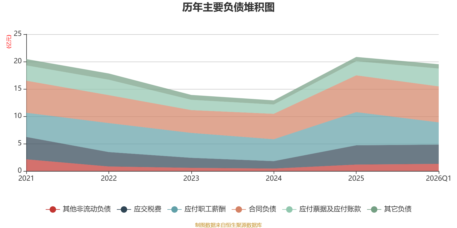 负债重大变化方面,截至2026年一季度末,公司应付职工薪酬较上年末减少33.04%,占公司总资产比重下降2.53个百分点;应付票据及应付账款较上年末增加25.99%,占公司总资产比重上升0.61个百分点;合同负债较上年末减少2.11%,占公司总资产比重下降0.51个百分点;应交税费较上年末减少0.39%,占公司总资产比重下降0.2个百分点。