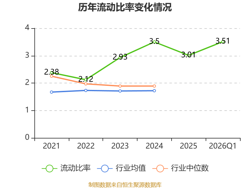 2026年第一季度,公司流动比率为3.51