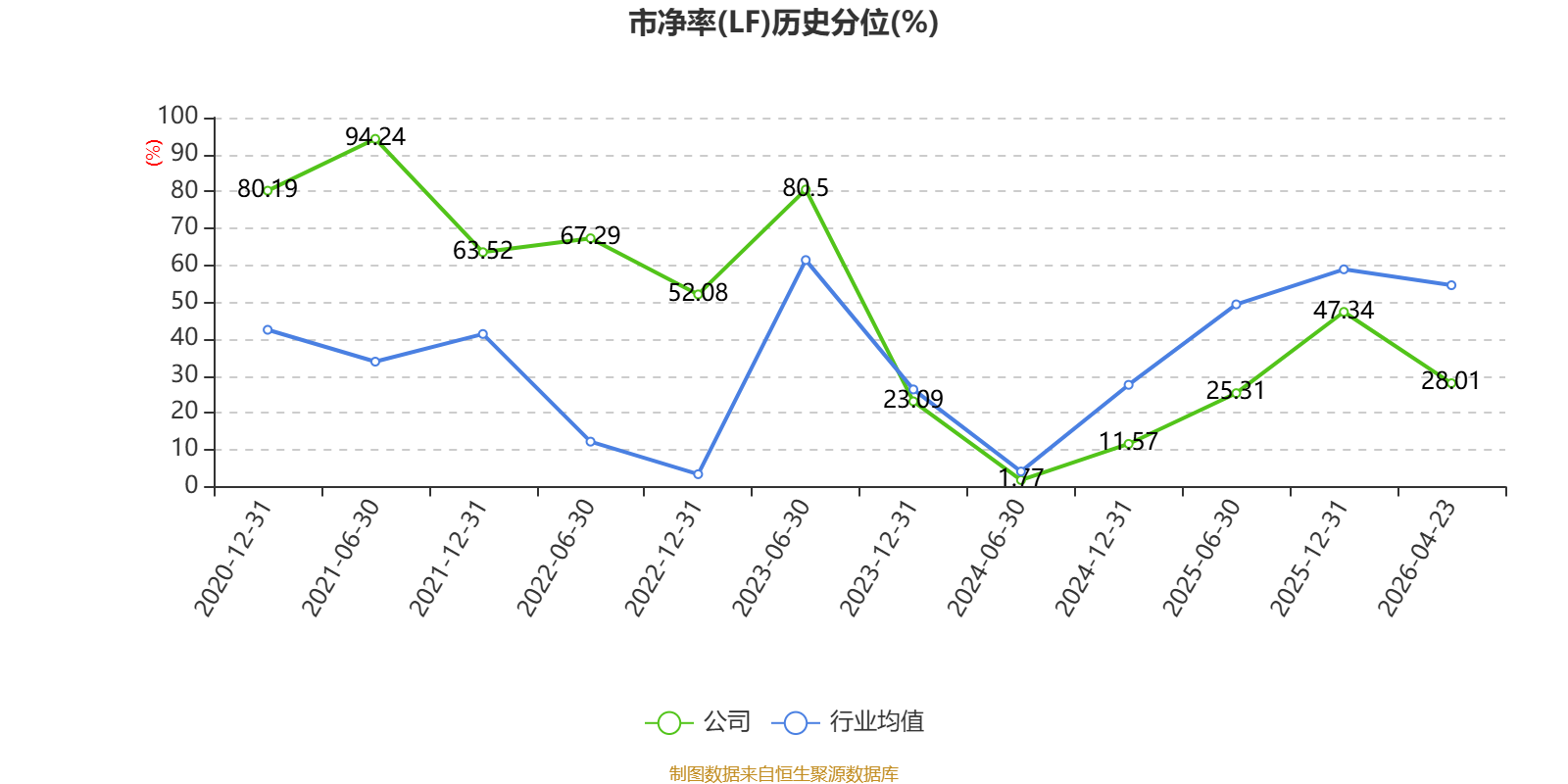 市盈率、市净率为负时,不显示当期分位数,会导致折线图中断。