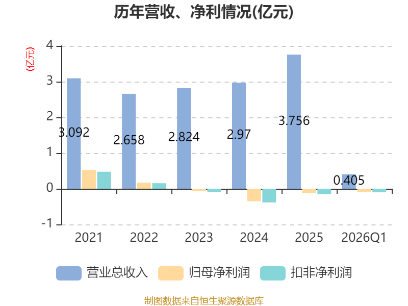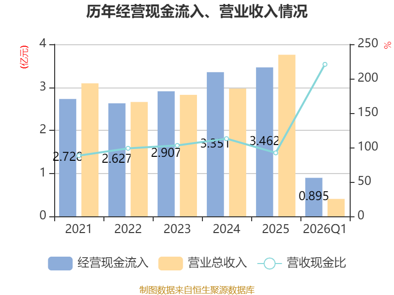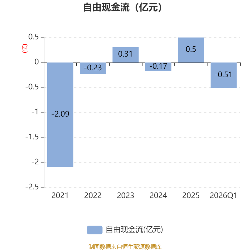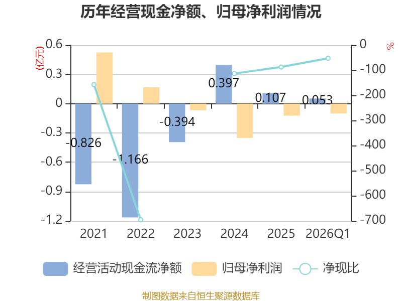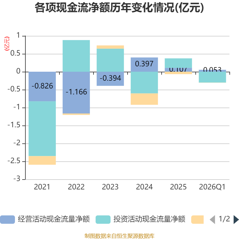 截至2026年一季度末,公司经营活动现金流净额为526.36万元,同比增加803.63万元;筹资活动现金流净额-37.37万元,同比增加7.21万元;投资活动现金流净额-3044.78万元,上年同期为-397.87万元。